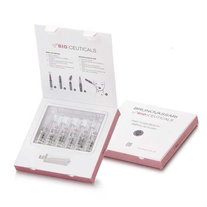 Ampollas de belleza inmediata que reducen los signos de fatiga y tienen una acción reafirmante. La piel se muestra más luminosa y tensa.